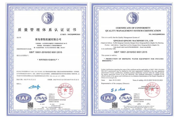 青岛青牧机械有限公司成立于2013年,是一家集研发、生产、销售、服务于一体的综合性企业。公司专注于家禽饮水设备的研发和生产,拥有专业的研发团队、先进的加工设备以及自动化组装线,力求打造“简单、高效、环保”的高端禽用饮水系统。